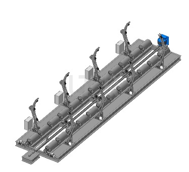Учитывая требования по высоте РТК (не выше 4 метров из-за ограничения высоты цеха), сварка швов производится «в горизонте» (АСУ ТП РТК отводит упоры от обечайки при приближении робота с горелкой для проварки швов под зажатыми упорами).